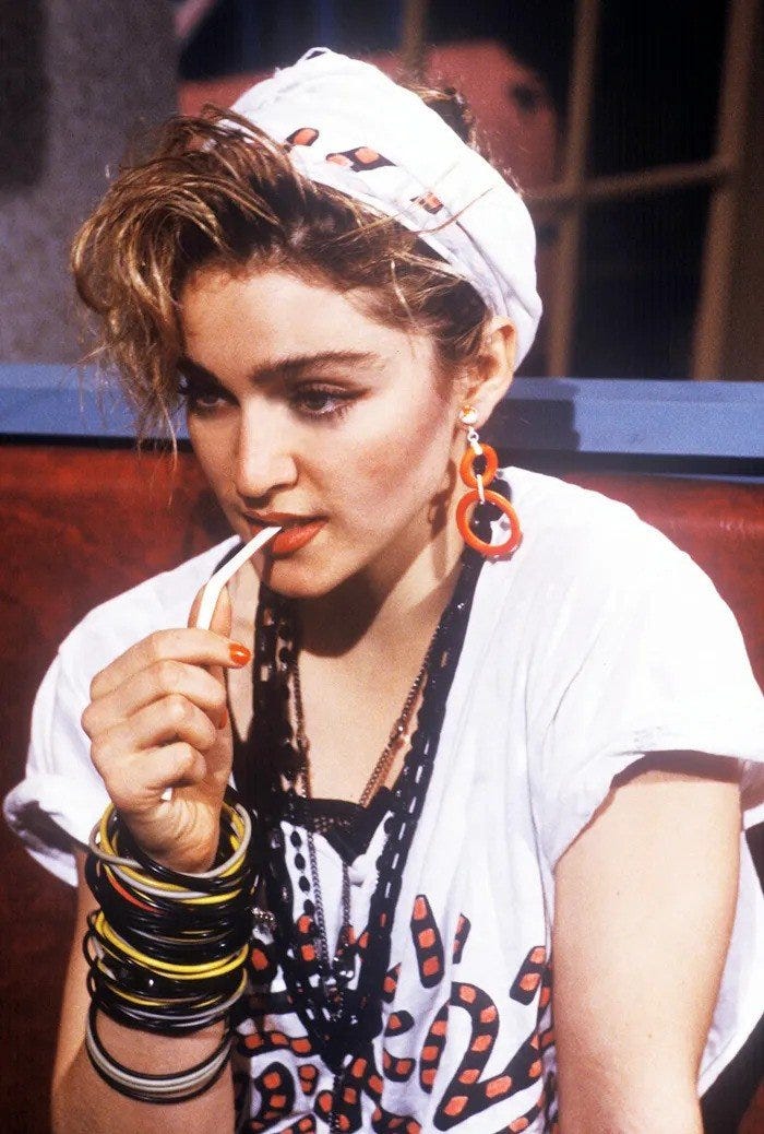 One of my first big WOW jewellery inspired moments was seeing the young Maddonna just smashing a look with all her accessories; creating her own singular look and sound enhanced by her punky and rebellious thrift store style accessories. I hunted high and low for those virgin bands. We all did.