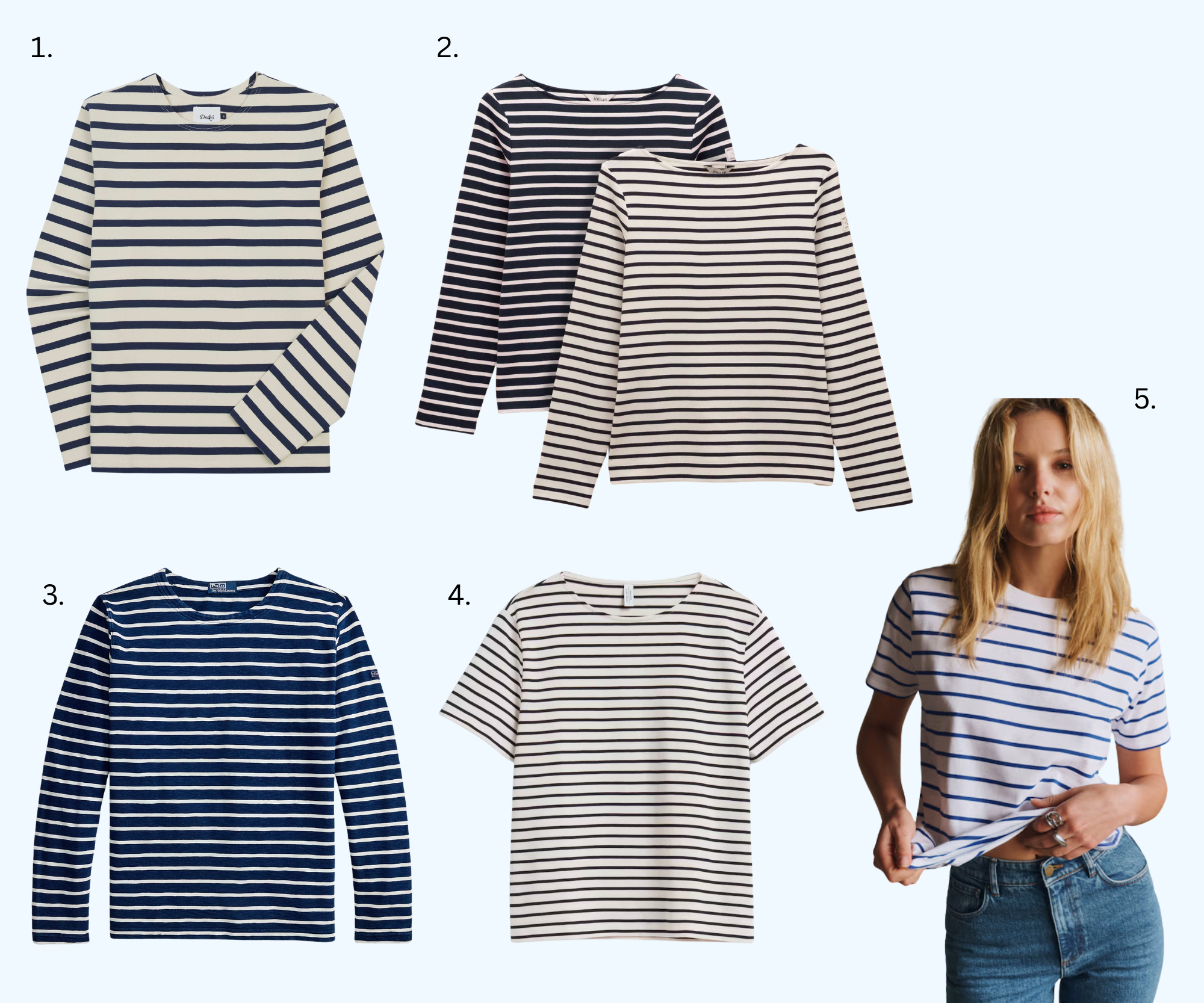 I love how the Breton started as workwear (most of the best things did) in 1858, when the French Navy adopted the striped jersey as part of Sailors’ uniform. It was Coco Chanel who introduced it into her designs in 1917 after spending time on the French coast. And the rest is blue and white history; it has now been made truly iconic by the likes of Picasso, Jean Paul Gaultier,Birkin, Bardot and Audrey Hepburn and of course many others. It is now in the style of classics hall of fame as signals something not just effortless French cool, but also an artistic identity and a bit of intellectual savoir- faire too. Not to mention how comfy it is. I will be wearing mine all summer long.