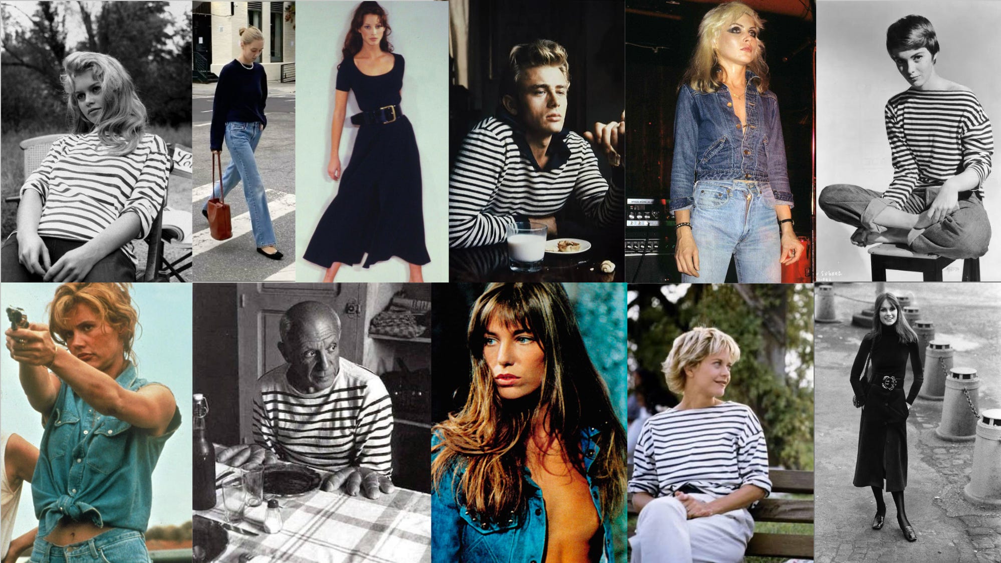I went off the Breton top as EVERYBODY and their MUM was wearing it, but I am back into them now. I wore my one for years and years and it literally fell apart. It was a man’s one and actually I like the mens’ shape better; they fit looser and more free; they feel cooler on - at least for me. Sometimes the womens Bretons can be nipped in at the waist and be fitted, and that was rarely how the icons wore them. I think they look better when they hang a bit and the cotton falls in a softer way over the body.